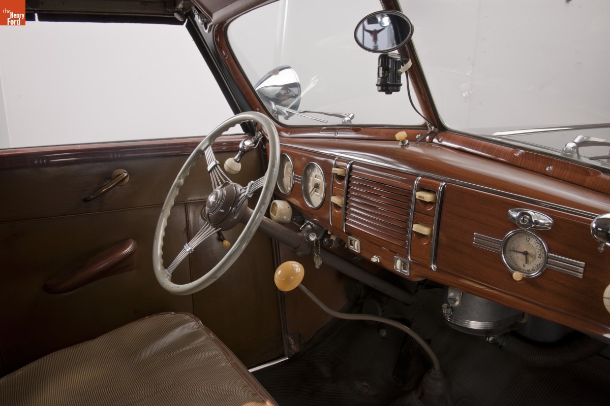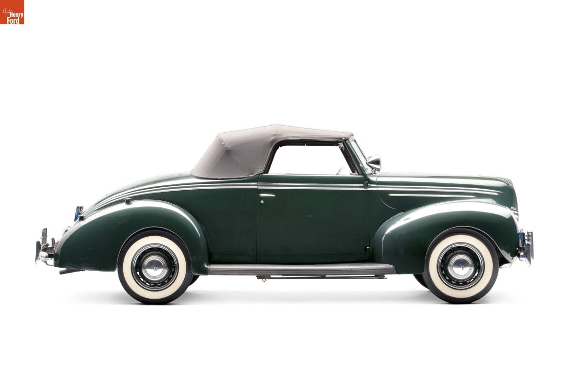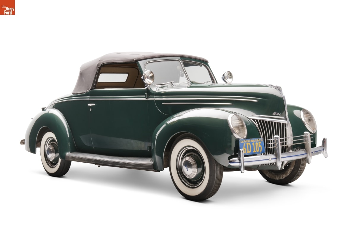 Americans sped through the 1930s in a variety of vehicles. This 1939 Ford convertible coupe provided drivers with a V-8 engine, 1930s styling, and something new for a Ford -- hydraulic brakes. This was the last year however Ford equipped its vehicles with a rumble seat.