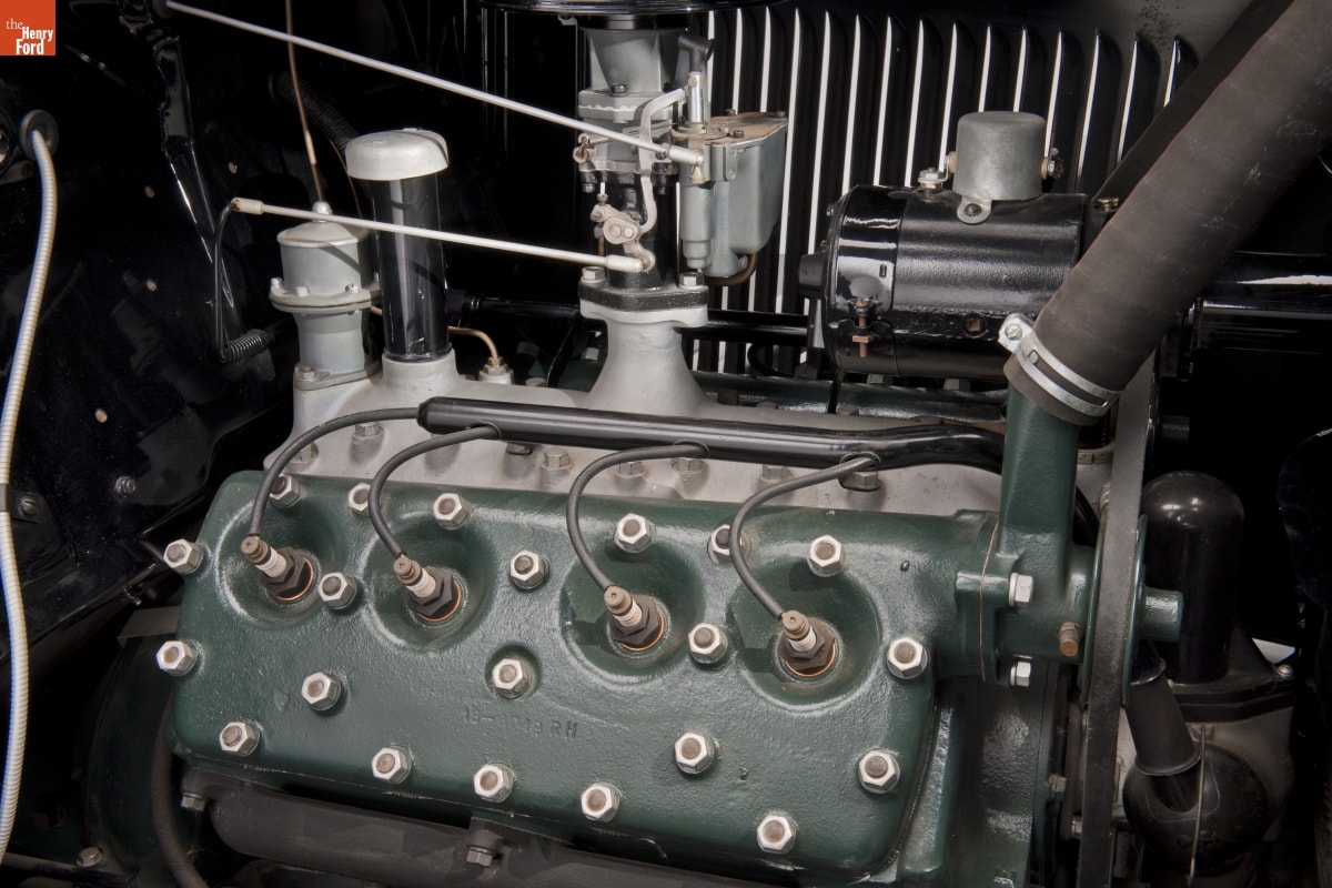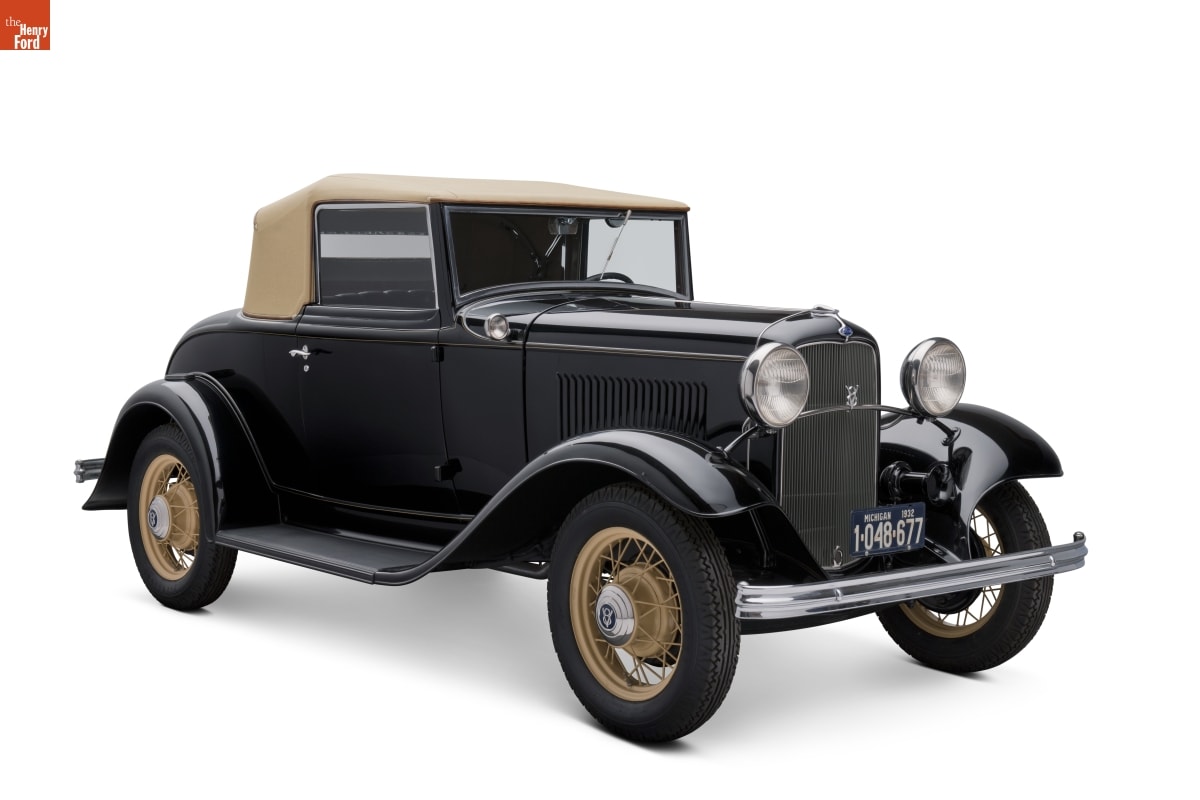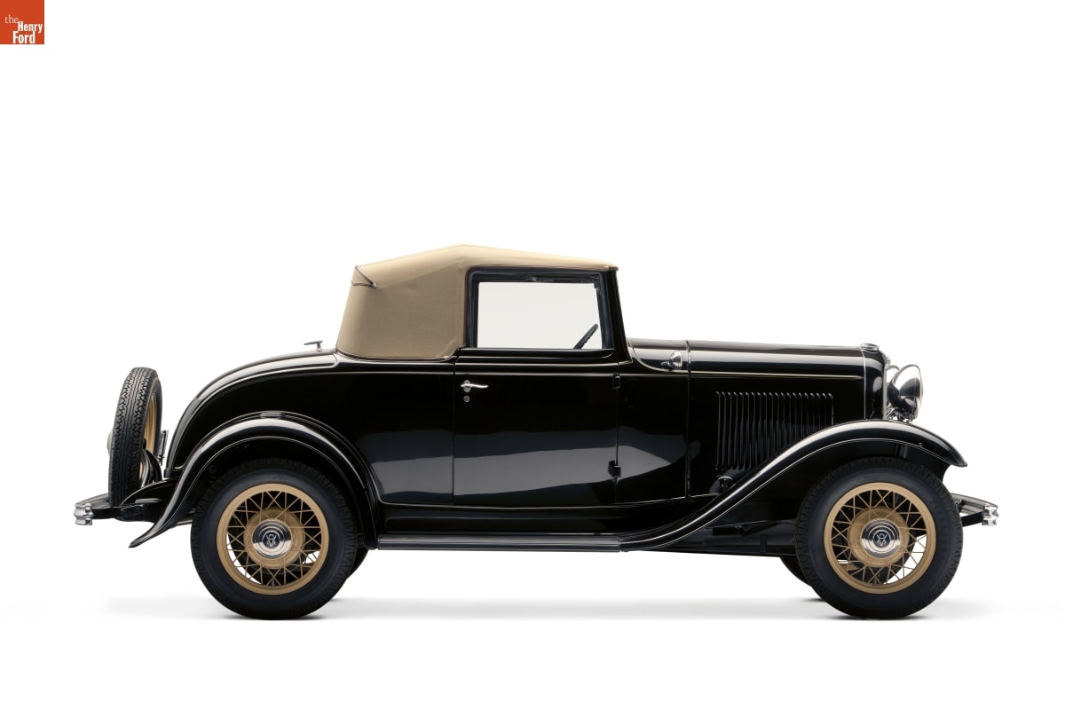 The 1932 Ford automobile combines the attractive facelift of the 1931 Model A with the world's first low-priced, cast-in-one-piece V-8 engine. Powered by Henry Ford's latest personal engineering triumph, his "en block", or one piece, V-8 engine, the 1932 Ford outperformed all other popular competitors. The vehicle's improved proportions and styling reflected Edsel Ford's, Henry's son, genius for design.