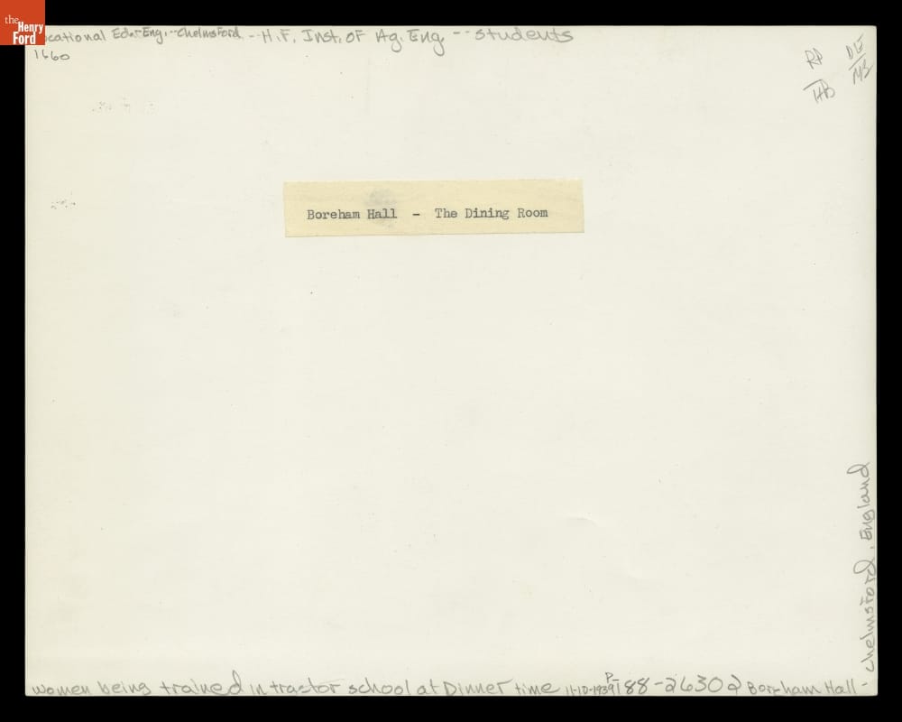 Students in Dining Hall at Henry Ford Institute of Agricultural Engineering, England, 1939