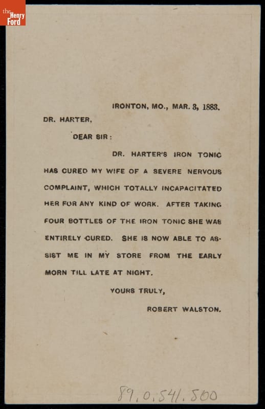 THF214472 / Trade Card for Dr. Harter's Iron Tonic, circa 1883