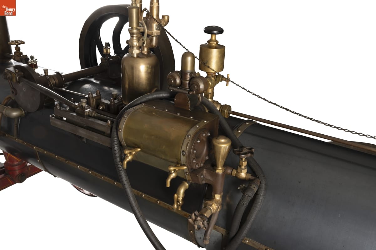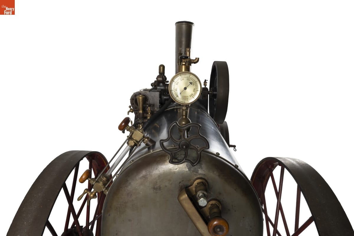 Steam engine designed by Howard Simpson and made by Ford Motor Company. Steam gauge manufacturered by Crosby Steam Gage and Valve Company of Boston, Massachusetts.