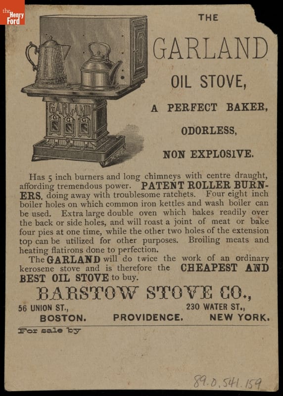 Trade Card for Garland Oil Stoves, Barstow Stove Co., 1880-1900