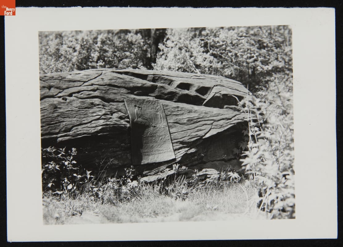 Boyhood Rock with John Burroughs Memorial Plaque, Roxbury, New York, 1944