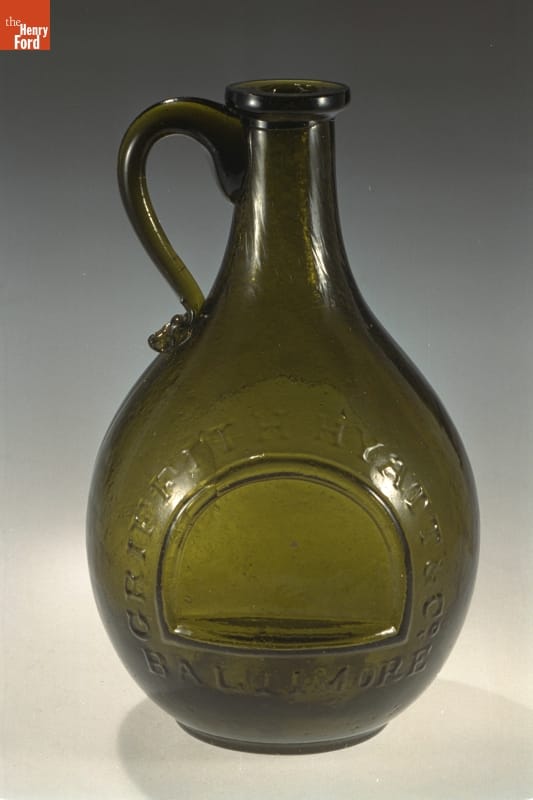 Bottle created by Baltimore Glass Works for whiskey distributor, Griffith, Hyatt & Co.