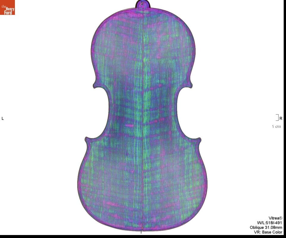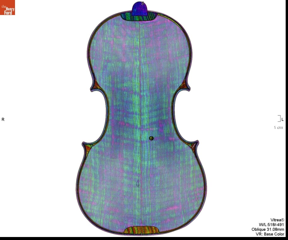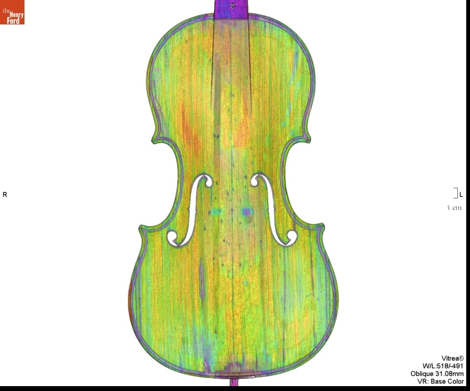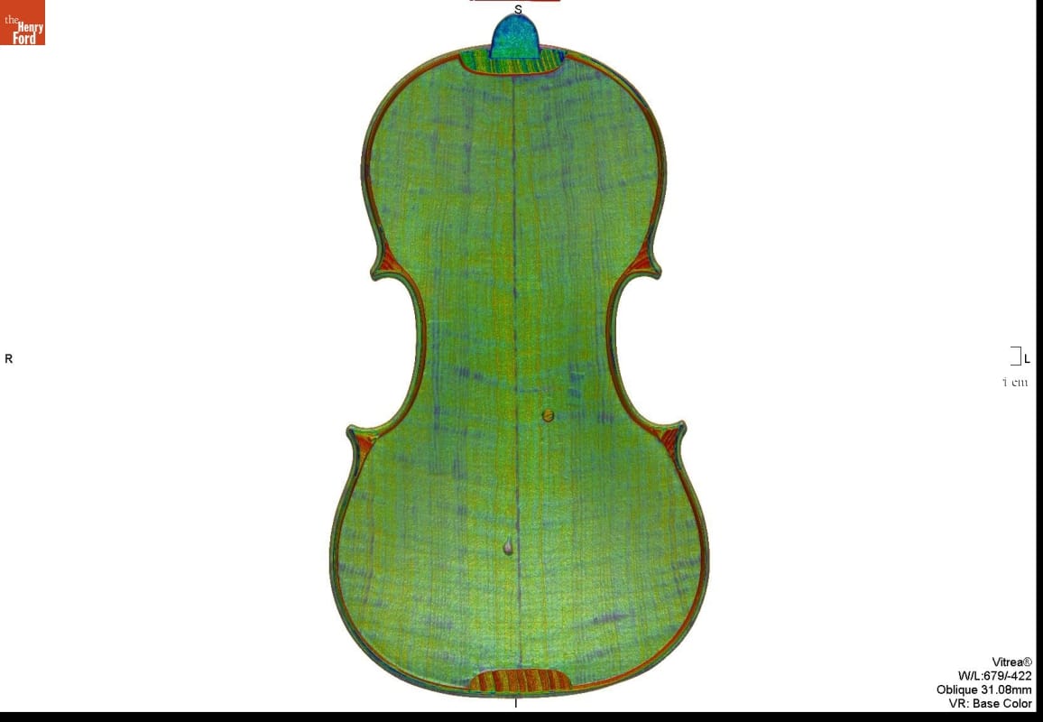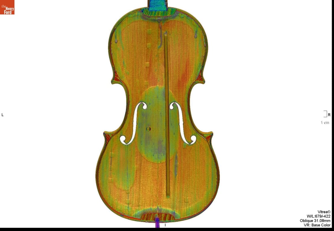 In the 1920s, Henry Ford purchased several exquisite Italian violins, including this 1703 Stradivari. From the 1680s until the 1730s, Antonio Stradivari was the leading stringed-instrument maker in Cremona, Italy--an important center of stringed instrument production. Henry Ford's 1703 Stradivari violin was made during Stradivari's "golden era." It is known as the "Rougemont" because it was thought to have been owned by a family of that name.