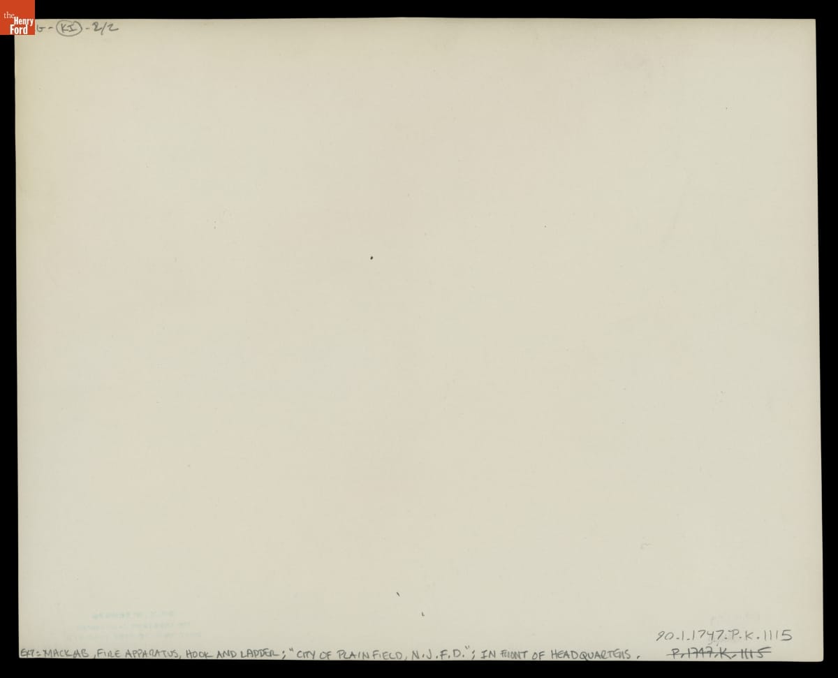 Mack Model AB Hook and Ladder Fire Truck in Use by the Plainfield New Jersey Fire Department, 1911-1916