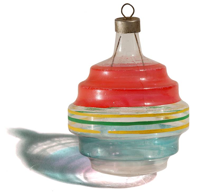 1942-1945: This ornament was not silvered, as metallic lacquers were hard to come by early in the war, but resources still allowed for a thin metal cap, 2000.99.3 (THF155288)