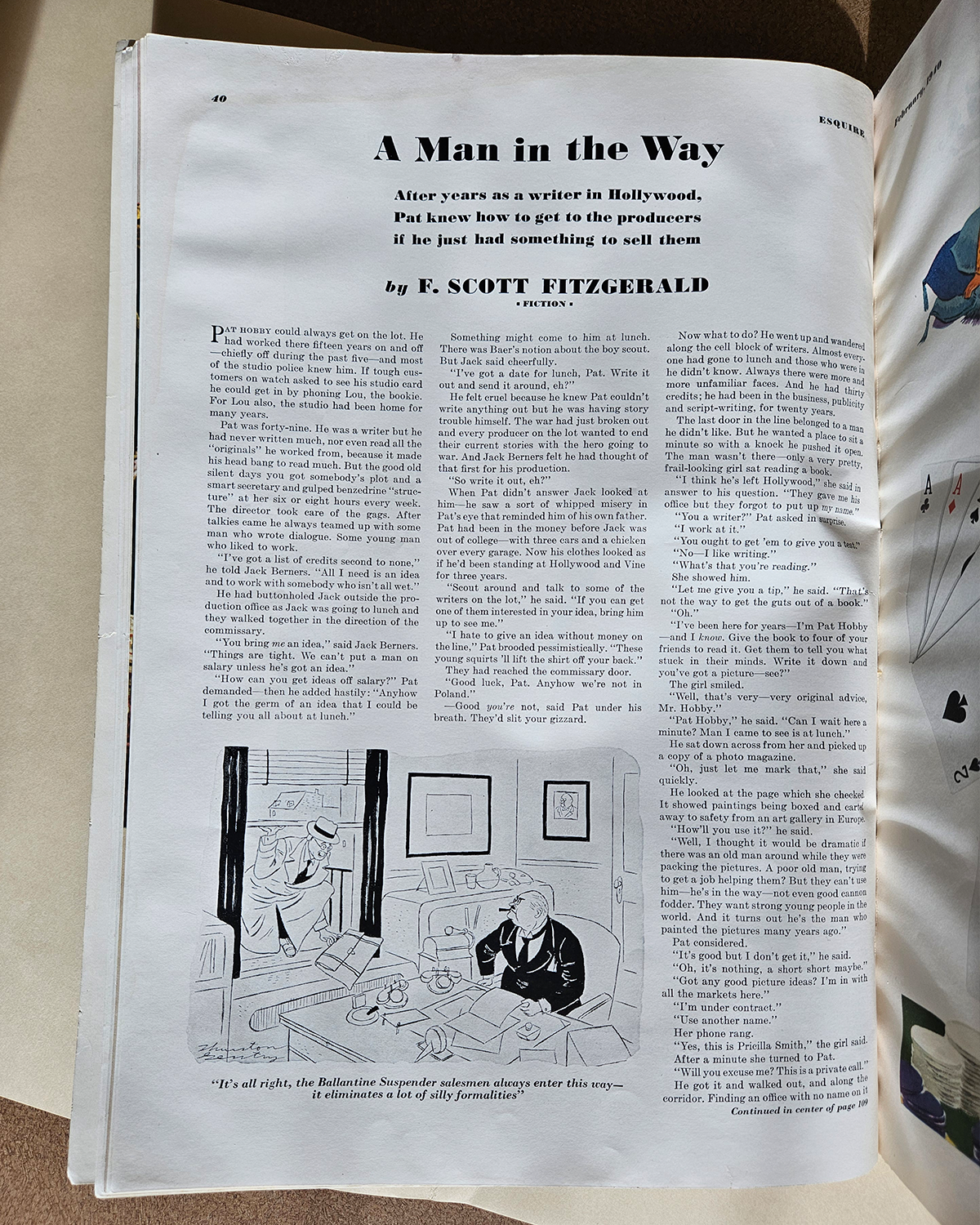 As we enter the 1940s, F. Scott Fitzgerald, of "The Great Gatsby" fame, published his last run of short stories in Esquire magazine. The stories were thinly veiled vessels for his feelings about his later life and time in Hollywood. He would die before seeing the run completed.