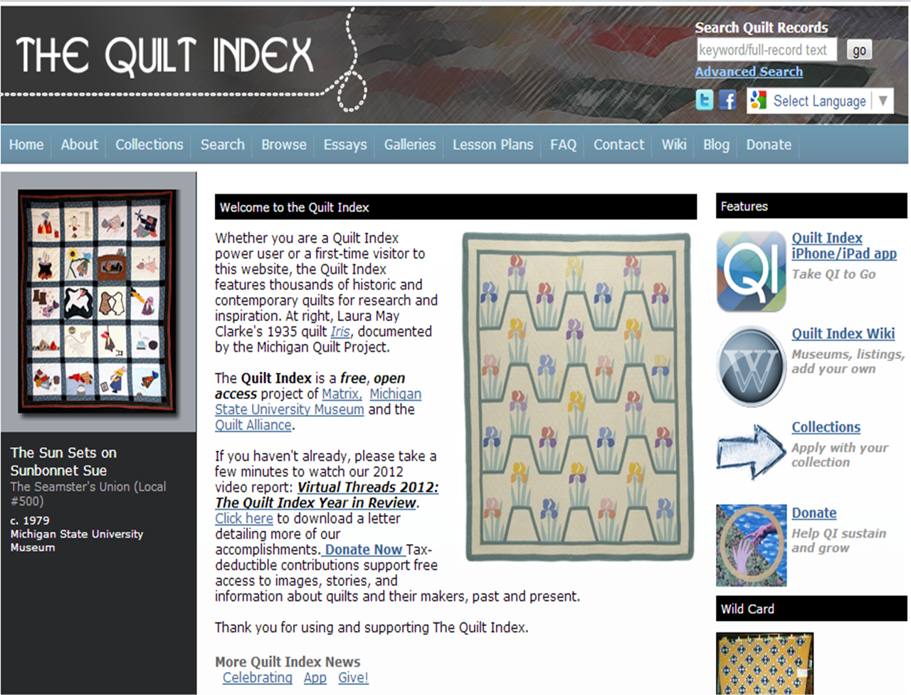While The Henry Ford’s collections webpage has allowed people who come to our website learn about our quilts, The Quilt Index broadens our reach. Through The Quilt Index, people all over the world can readily find information on many of our quilts—even if they were unaware that we have a quilt collection. Too, The Quilt Index allows researchers to examine our quilts “side by side” with quilts from other sources—even though the quilts themselves may be thousands of miles apart.