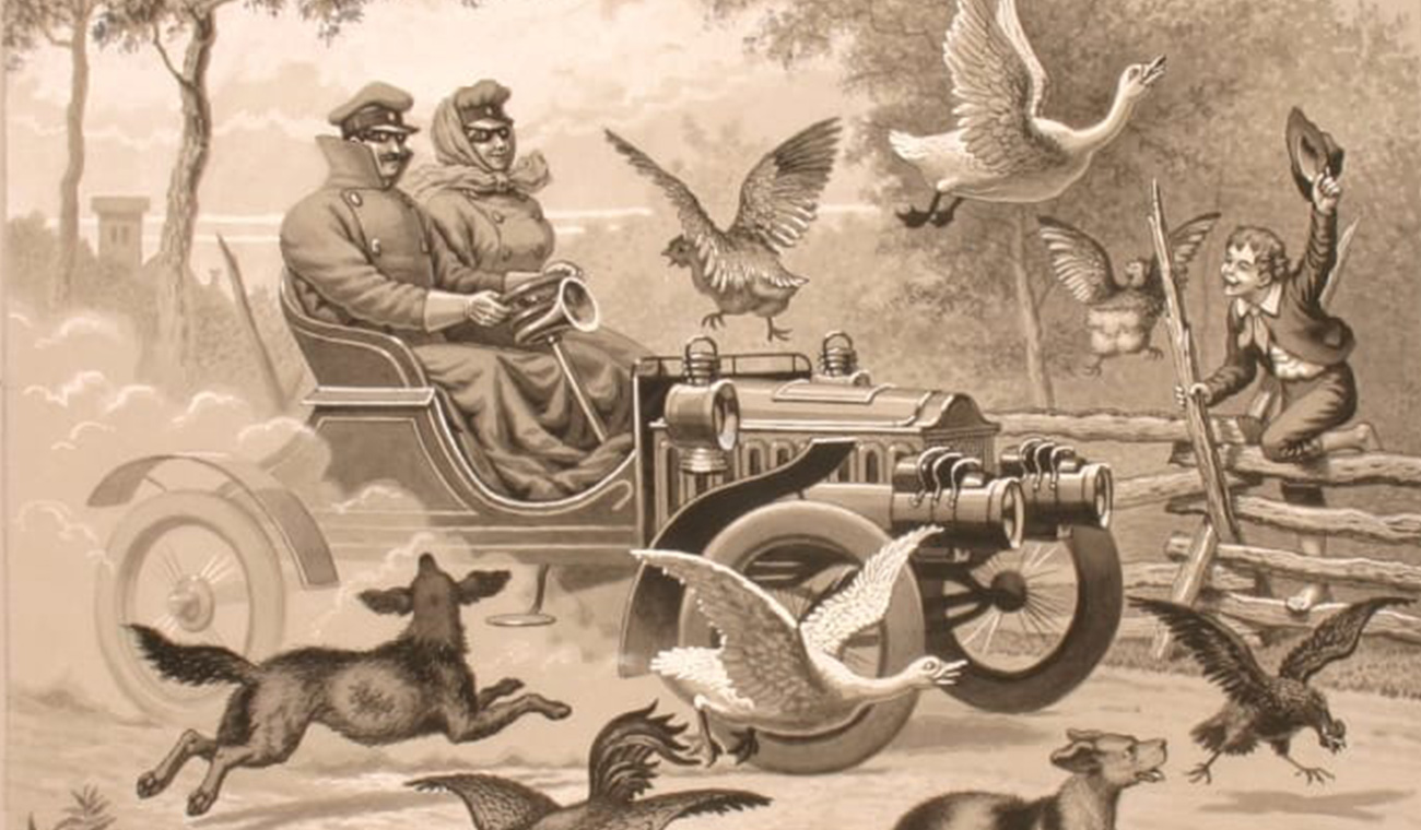 featuring horse-drawn and horseless transportation