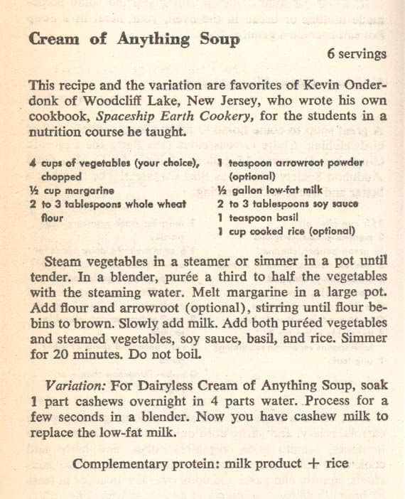 Hippie lifestyles of the 1960s encouraged Americans to think vegetarian in the late 20th century. This cookbook, first published in 1971, gave tips for cooking with non-meat protein-rich foods like grains, beans and peanuts instead of meat.